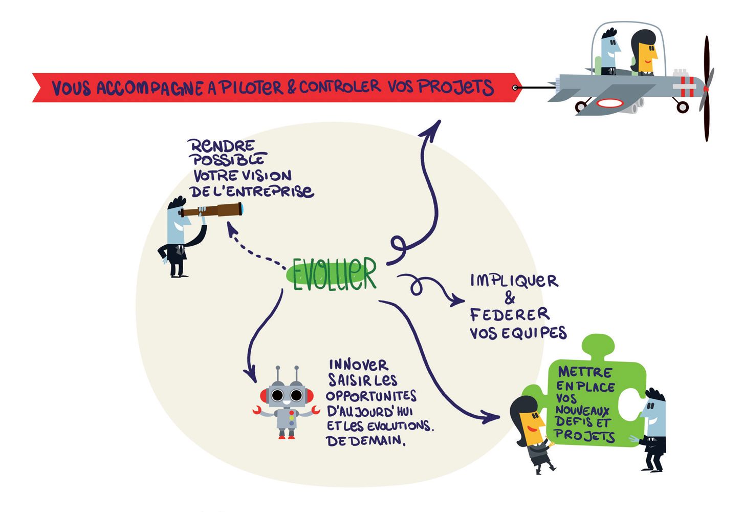 Evoluer, c’est changer de position ou de nature. Dans cette phase, nous intervenons plutôt comme « chargé de projet » afin de :